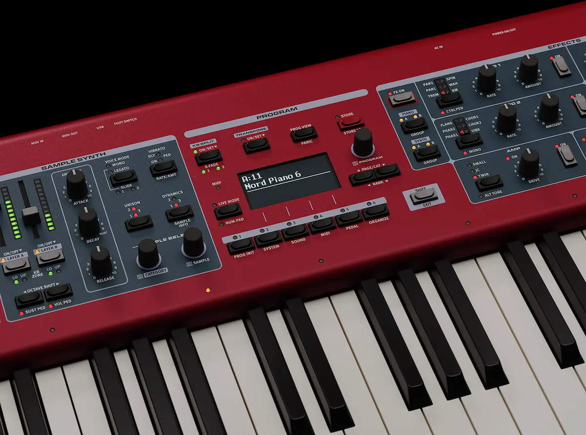The latest generation of the Nord Piano series features a new panel design with LED faders, dual layers for Piano and Synth with independent effects and a premium Triple Sensor keybed.