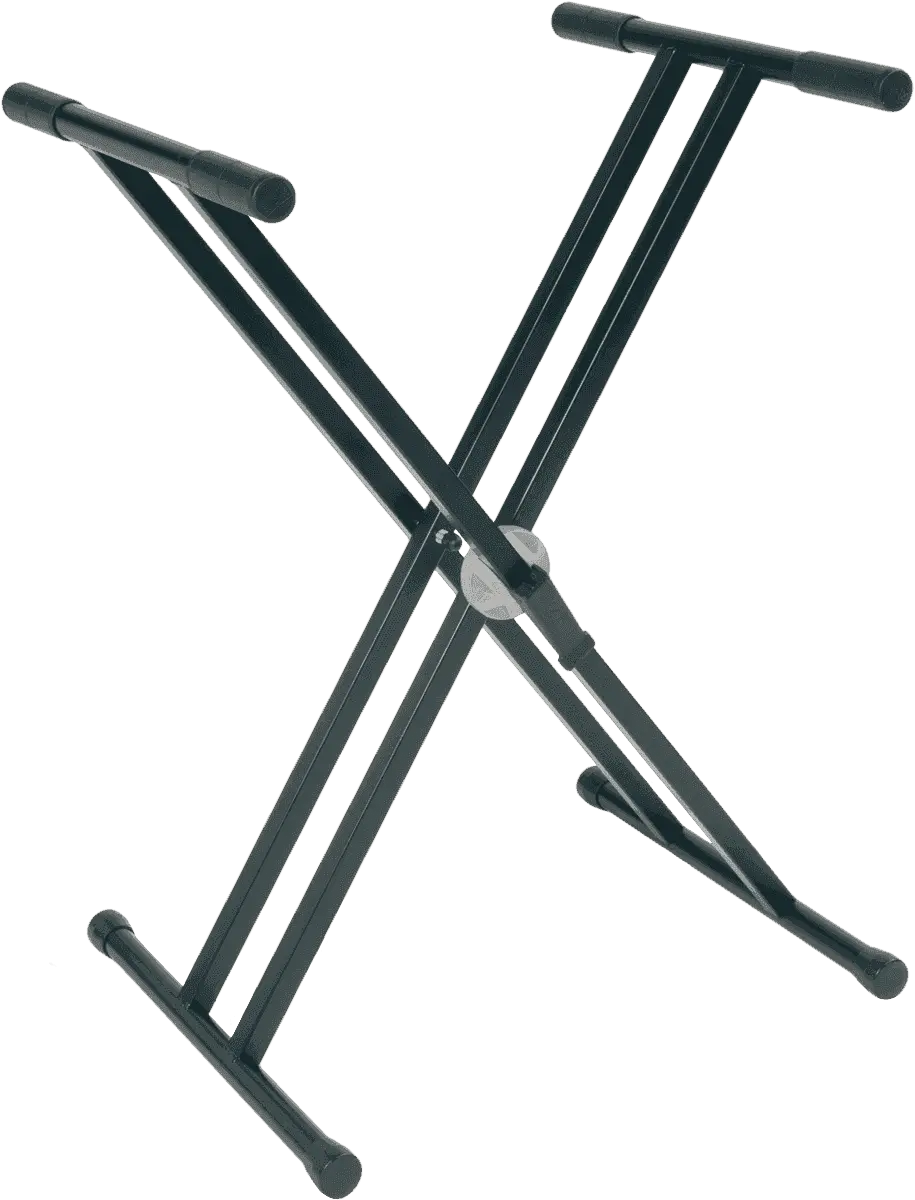 Heavy-duty Master 4 titanium keyboard stand with double braces and aluminium center Ball-lock for precise adjustment. Arms equipped with rubber ends.