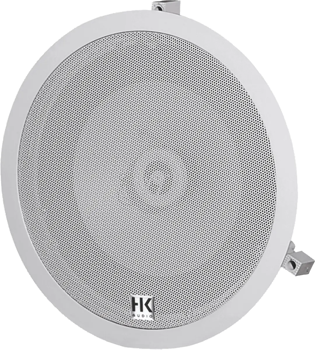 This two-way speaker installs into ceilings. It is well-suited for background and near-field sound reinforcement in foyers, boutiques, bars, restaurants, shopping centers, airports and railway stations. The enclosure is loaded with an 8″ woofer and a 1″ tweeter with neodymium magnets. Both drivers are aligned in coaxial array. The IL 80 CT features a built-in passive crossover and a 100V transformer with selectable power taps (accessible from below once the speaker installed). The front bezel is made of white polymer with a metal grille insert. It is installed using clamps that are accessible from below. This fullrange speaker”s frequency response is wide enough for use without a subwoofer.