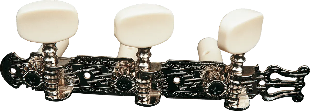 Platinum nickel machine heads with lyre - Plastic buttons - 2 set 3 in a row.