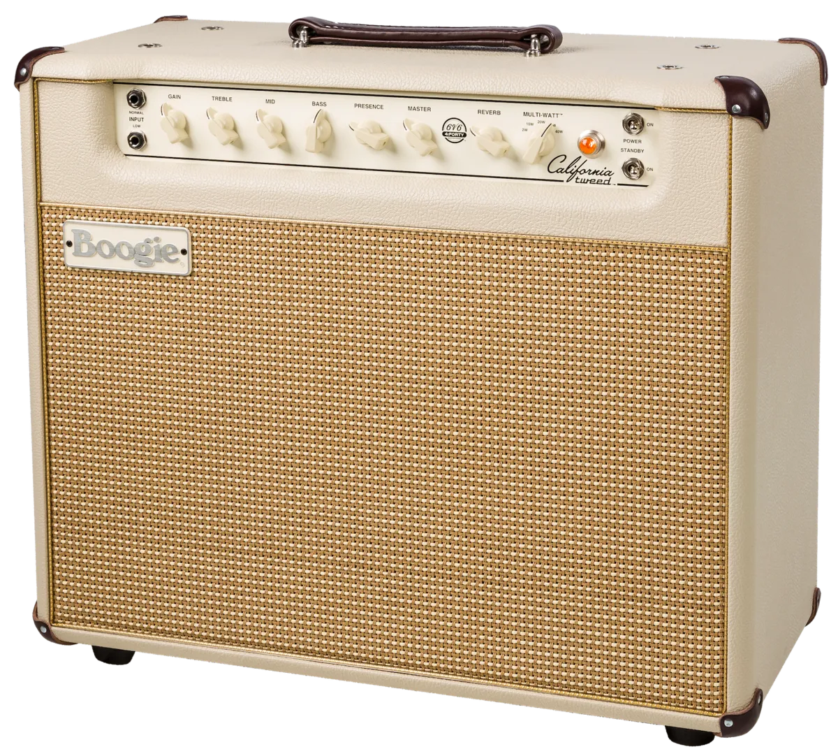 A quick look at the front panel of the California Tweed reveals that it is a simply designed, single channel combo amplifier. The channel includes normal and low inputs, as well as a gain, treble, mid, bass, presence, reverb and master controls. The legendary Vintage all-tube spring reverb effect with the option of connecting an external footswitch to control the reverb and a fully buffered, serial effects loop round off the equipment, which offers everything you need for the perfect "golden" tone - without unnecessary technology or complicated operation. Whether you want to plug your pedals directly into the input or into the integrated effects loop, the California Tweed 6V6 4:40 Combo offers an ideal platform for pedal enthusiasts in a compact head that captures the perfect Vintage sound and redefines portability.