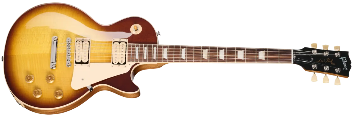 The Les Paul Standard 50s Double Trouble delivers all of the features and performance of ourregular Les Paul Standard 50s models but with even more vintage appeal. These limited-run LesPaul models differ from our standard Les Paul Standard 50s models in two respects. First, theBurstbucker™ 1 and Burstbucker 2 pickups are left uncovered, and each has Double ClassicWhite bobbins and is fitted with the standard Alnico 2 magnets. The second difference is in thefinish. The finish colors are "Vintage" variations on our standard nitrocellulose lacquer finishes.Our standard gloss nitrocellulose lacquer finishes represent the finishes on brand-new modelsfrom the 1950s, while the full-gloss nitrocellulose lacquer Vintage finishes on the Les PaulStandard 50s Double Trouble models are slightly faded when compared to the standard versions,like the subtly faded light vintage aging that occurs over several years. The burst patterns varysomewhat from guitar to guitar since each is individually hand-sprayed.Of course, all of the standard features that make the Les Paul Standard 50s models so widelyloved are all still here, including a solid, non-weight-relieved mahogany body with an AA figuredmaple top and a rounded 50s Vintage-style mahogany neck with a rosewood fretboard, 22medium jumbo frets, and trapezoid inlays. The Les Paul Standard 50s Double Trouble iSequipped with an ABR-1, the classic-style Tune-O-Matic™ bridge, an aluminum Stop Bartailpiece, Vintage Deluxe tuners with Keystone buttons, and aged gold Top Hat knobs with dialpointers. The uncovered, calibrated Burstbucker ™ 1 (neck) and Burstbucker 2 (bridge) pickupsare internally the same as their standard Burstbucker counterparts, with the exception of theDouble Classic White bobbins. They are handcrafted in the Gibson Pickup Shop, loaded withAlnico 2 magnets, and hand-wired with audio taper potentiometers and Orange Drop®capacitors. The Double Classic White pickup bobbins and Vintage finishes combine to give theLes Paul Standard 50s Double Trouble an elegant vintage vibe. While they have a vintage-stylefinish and an accessible price, production is limited to only 500 guitars in each color, meaningthere's limited availability, so act fast and get your favorite now while you still can!
