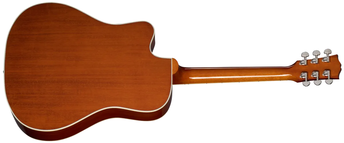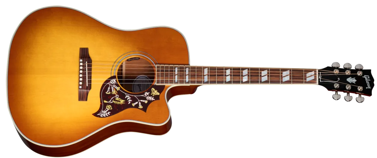 The Gibson Hummingbird ™ is known for its versatility. It has always been equally well suited for strumming first-position chords and taking the spotlight for picking lead lines. The Hummingbird has become more versatile and expressive than ever with the introduction of the Hummingbird Standard EC. Like the Hummingbird Standard, the Hummingbird Standard EC's mahogany body and sweet, select Sitka spruce top are more than capable of holding down the rhythm in the hands of a rock and roll sideman or accompanying the most nuanced performance under the fingers of today's alternative singer-songwriter, but with the addition of the cutaway on the Hummingbird Standard EC, the access to the upper frets is significantly increased, making this the Hummingbird of choice for lead players and others who require increased note range and enhanced expressiveness. The Hummingbird's mahogany neck has a comfortable Round SlimTaper™ profile and mother-of-pearl parallelogram inlays. This 'bird has a TUSQ® nut, saddle, and bridge pins, Grover® Rotomatic® tuners, the iconic Hummingbird graphics on the pickguard, and is equipped with L.R. Baggs™ VTC electronics, so it's ready to plug in on stage or in the studio from the moment you take it out of the included hardshell case.