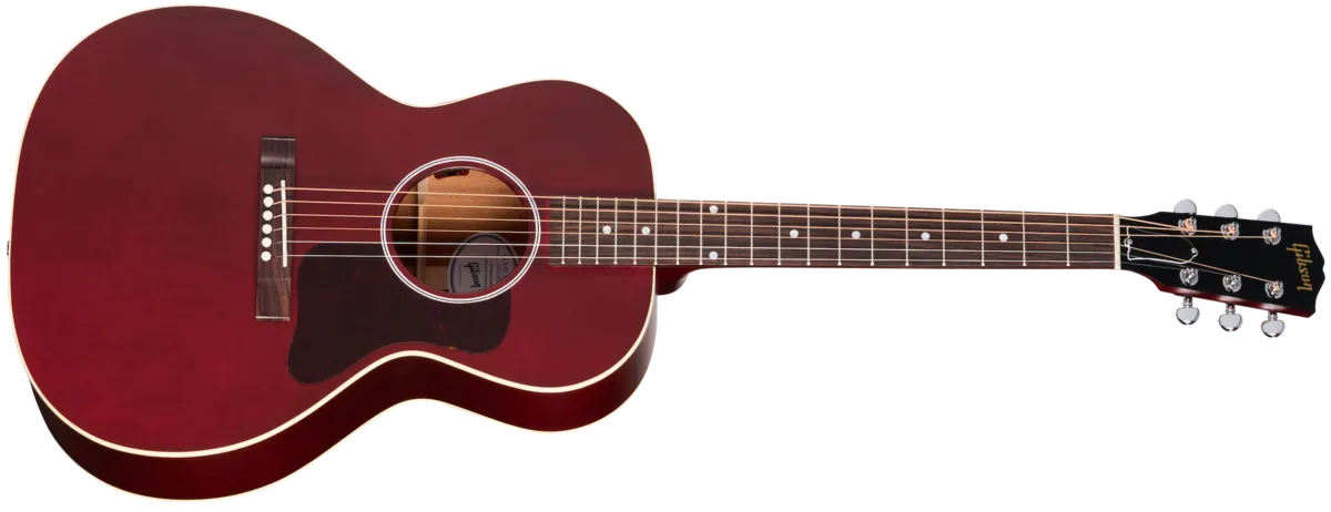First introduced in 1932, the L-00 has remained the most well-known and popular small-body acoustic model in Gibson's illustrious history. The new L-00 Special is crafted by Gibson's expert acoustic luthiers in Bozeman, Montana, and offers players a USA-built Gibson acoustic guitar at a very accessible price. The L-00 Special is constructed using genuine, solid mahogany for the back and sides and has a solid Sitka spruce top with our traditional scalloped X-bracing for a balanced tone with excellent dynamic range for a small-bodied acoustic. Both the top and back feature single-ply binding around the perimeter. The narrower waist of an L-00 body shape provides a focused and nuanced sound, naturally giving it a leaner and tighter bass response that sits perfectly in the mix. The tone is ideal for fingerstyle playing and blues and works very well for other genres and playing styles, too. The utile neck is attached to the body with a compound dovetail neck-to-body joint, and like all Gibson acoustic guitars, it is affixed with hot hide glue. The neck has a comfortable and fast-playing Slim Taper ™ profile, and the rosewood fretboard has a 12" radius and is adorned with simple mother-of-pearl dot inlays and is fitted with 19 standard frets. The closed slot rectangular rosewood bridge is equipped with a TUSQ® saddle, and the nut and bridge pins are also TUSQ. Smooth turning Grover® Mini Rotomatic® tuners ensure solid tuning stability. The L-00 Special is finished in satin nitrocellulose lacquer in your choice of Satin Vintage Sunburst or Satin Wine Red. It comes equipped with an L.R. Baggs™ Element Bronze active under-saddle piezo pickup and active preamp with an easy-to-access soundhole-mounted volume control, so it's stage and studio-ready from the moment you take it out of the included premium soft shell case.