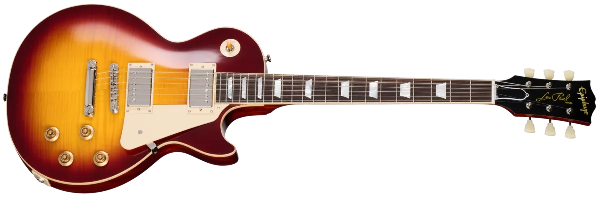 Made in partnership with Gibson Custom, the Epiphone 1959 Les Paul Standard Reissue delivers vintage Les Paul looks and performance at an accessible price. All of the classic appointments the 1959 Les Paul Standard model is known and loved for are present here, including a