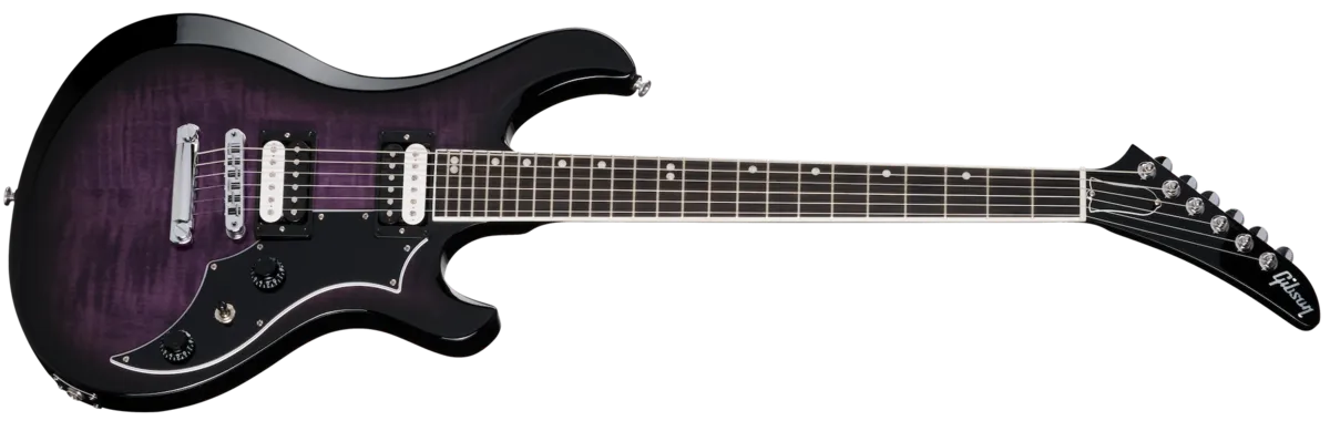 The new Gibson Victory Figured Top was created in response to player requests for the return of this 80s-era cult favorite. Crafted for limitless self-expression, it carries the DNA of the original versions with enhanced features such as refined body contours, improved weight and balance, and an Explorer™ headstock. The Victory Figured Top has a 25.5" scale length, and the mahogany neck has an ebony fretboard with a compound radius for enhanced playability, a SlimTaper™ profile, and 24 medium jumbo frets. The mahogany body has an AA figured maple cap, a Tune-O-Matic™ bridge, a Stop Bar tailpiece, and a gloss nitrocellulose lacquer finish. The highly flexible electronics include two 80s Tribute humbucker™ pickups wired to push/pull master volume and tone controls for coil splitting and inner/outer coil selection when the coils are split, which, along with the three-way pickup selector switch, deliver a wide range of humbucking and single coil tonal options with a minimum amount of controls. A Gibson hardshell case is also included.