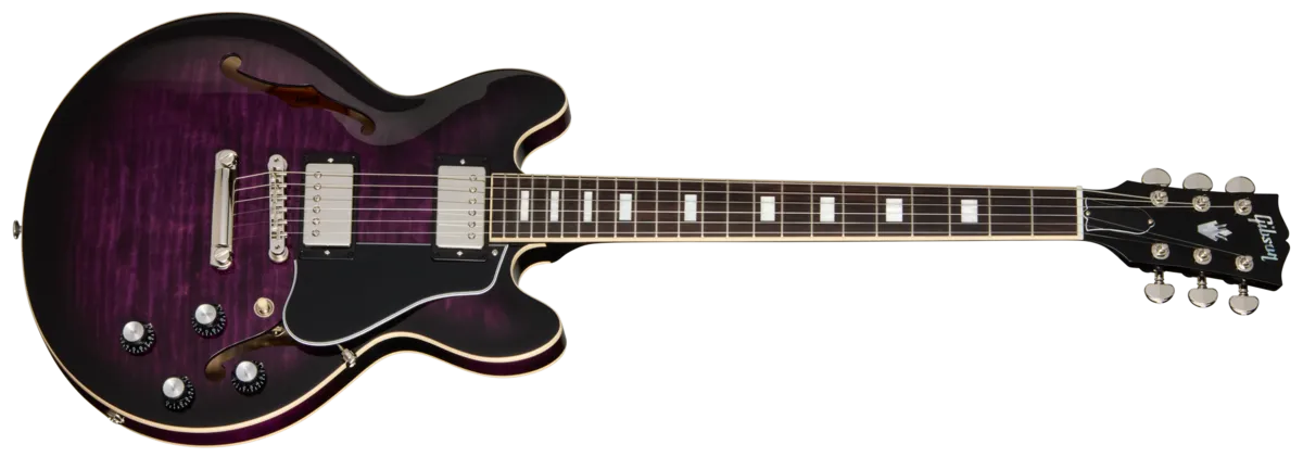 The Gibson ES-335 has been one of the world's most popular guitars and has remained in continuous production since its introduction in 1958. Incredibly versatile, it has been used across genres by some of the world's greatest guitarists for decades. The Gibson ES-339 was developed from this legendary model, and retains the same semi-hollowbody design with a solid maple centerblock providing increased sustain and improved feedback resistance compared to fully hollowbodied designs. The Gibson ES-339 is a modern classic designed for those seeking the tone and look of an ES-335, but in a slightly smaller, lighter instrument. Now, the ES-339 Figured takes the ES-339 concept to a whole new level, with the same compact size, versatility, and full functionality of the ES-339, but with the addition of a beautifully figured maple veneer top. The ES-339 Figured has a body made of three layers of maple and poplar, with a gorgeous figured maple layer on the exterior. It is crafted with a maple centerblock and quarter-sawn spruce bracing just like its larger brother, and players will be impressed by the lightweight feel and expanded range of tonal capabilities. The mahogany neck has a comfortable Rounded C profile and is topped with a rosewood fretboard that is equipped with 22 medium jumbo frets and features acrylic small block inlays. The ES-339 Figured is equipped with high-end appointments, including our hand-wired control assembly with separate 500k volume and tone controls for each pickup. High-quality Orange Drop® tone capacitors are also used. The ES-339 Figured is equipped with a '57 Classic humbucker™ in the neck position, perfectly paired with a slightly hotter '57 Classic + humbucker in the bridge position. These pickups are not only ideally matched to each other but also offer a wide range of different sonic options to the player. The ES-339 Figured also has an ABR-1 bridge and Stop Bar tailpiece that are anchored into the maple centerblock for excellent sustain. A Gibson hardshell case is also included to keep this beautiful and versatile instrument safe and secure when you're on your way to band practice, a jam session, or to your next gig.