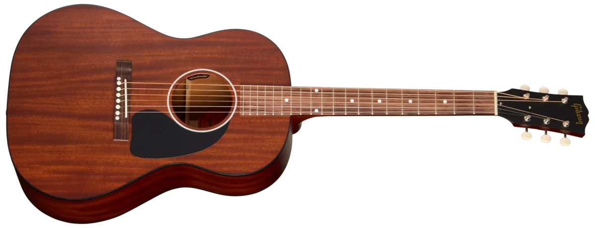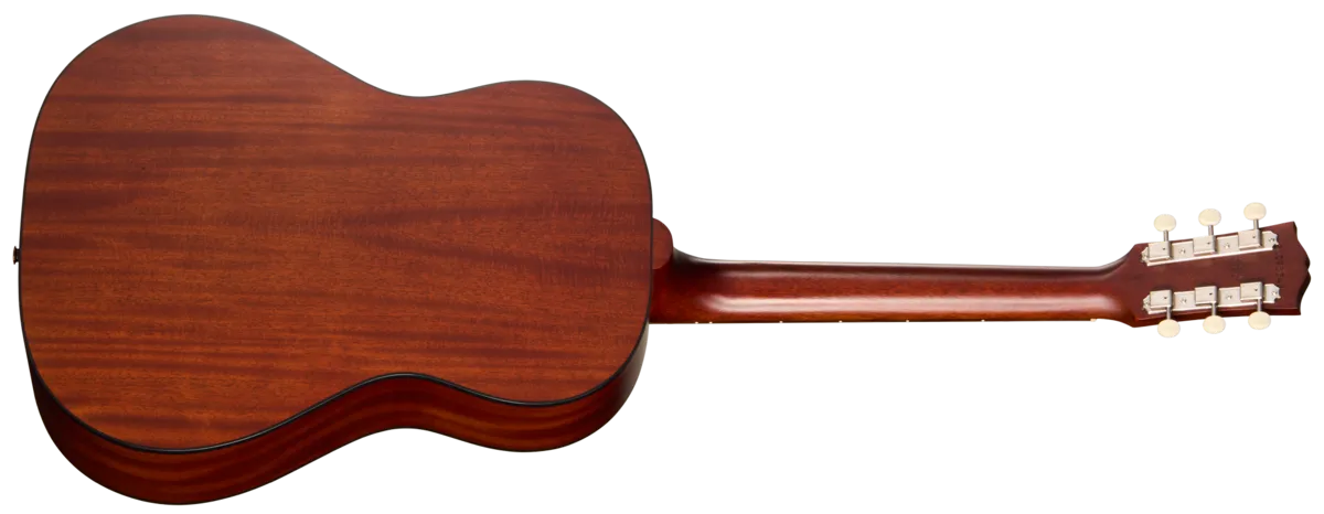 The Gibson LG-2 was first introduced in 1942 during the "Banner" era and quickly became a beloved small-body acoustic guitar model that was renowned for its big sound. The LG-2 was initially released with mahogany backs and sides paired with red spruce tops, but due to wartime shortages, material substitutions were common. Gibson sometimes used maple backs and sides, and LG-2 models with mahogany tops were also produced. Now, Gibson is proud to introduce the new LG-2 All-Mahogany Faded, a modern reinterpretation of Gibson's vintage all-mahogany models. The LG-2 All Mahogany Faded is constructed using solid mahogany for the back and sides, as well as a solid mahogany soundboard. The mahogany top is reinforced with traditional scalloped X-bracing, and the body features simple black binding on the top and back. The mahogany neck features a Rounded profile and is attached to the body using a compound dovetail neck-to-body joint. The neck is capped with an unbound rosewood fretboard, which is equipped with 20 standard frets and adorned with classy yet straightforward mother-of-pearl dot inlays. The LG-2 All Mahogany Faded is fitted with a sloped, rectangular, closed-slot bridge made from rosewood. The bridge features a bone saddle, while the bridge pins are TUSQ®. Grover® strap tuners with white buttons ensure solid tuning stability and, along with the teardrop pickguard, add to the instrument's vintage charm. The LG-2 All Mahogany Faded's all-mahogany top and body give it a warmer, rounder, and smoother sound than a guitar with a similar size and a spruce top, making it an ideal choice for folk, blues, and fingerstyle playing. The LG-2 All Mahogany Faded's smaller dimensions also make it easier to hold than acoustic guitars with larger bodies. In a nod to the needs of modern performers and recording guitarists, the LG-2 All Mahogany Faded is factory-equipped with an L.R. Baggs ™ VTC under-saddle transducer and built-in preamp. The L.R. Baggs VTC system features soundhole-mounted volume and tone controls that are quick and easy for the player to access while remaining all but invisible to the audience. Theinclusion of high-quality discrete electronics makes the LG-2 All Mahogany Faded stage and studio-ready from the moment you take it out of the included Gibson hardshell case, while taking nothing away from its attractive, vintage inspired character and vibe. Whether you need a guitar for fingerpicking on the couch, performing at blues or folk festivals, or for a new and unique voicing to add to your arsenal of recording guitars, the LG-2 All Mahogany Faded should be on your "must have" list.