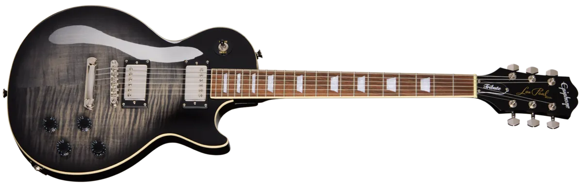 The popular Epiphone Tribute series, a gateway into the world of Epiphone guitars for countless new players, is expanding with the release of the new Epiphone Les Paul Tribute Plus. This affordable yet high-quality guitar is designed for beginner and intermediate-level players who want a quality guitar that won't hold them back or hinder their learning progress. The Les Paul Tribute Plus features a classic Gibson Les Paul-shaped body made from mahogany. It has a carved and bound top with an AAA flame maple veneer top that looks fantastic. The bolt-on mahogany neck has a fast and easy playing 60s SlimTaper Rounded C profile that makes practice sessions and jamming a joy, and a sculpted heel joint for improved upper fret access. The headstock features the popular 60s Kalamazoo shape and is outfitted with quality die-cast tuning machines, and the bound laurel fretboard is outfitted with 22 medium jumbo frets and adorned with pearloid trapezoid inlays. The Les Paul Tribute Plus is equipped with an Epiphone LockTone ™ Tune-O-Matic bridge and LockTone Stop Bar tailpiece for easy adjustment of string height and intonation, and both contribute to this model's excellent sustain. The Epiphone Les Paul Tribute is powered by a pair of Epiphone humbucker™ pickups, with an Epiphone 650R in the neck position and an Epiphone 700T in the bridge position. Both pickups are equipped with powerful ceramic magnets for strong, full-bodied tone, and under the nickel covers, they have zebra pickup coils. The Epiphone Les Paul Tribute Plus elevates the Tribute series with even more performance and better looks while remaining accessible to players everywhere. It's a great choice for your first electric guitar or as a step up from a lesser-quality instrument and will serve you well on your musical journey for years to come. An optional Epiphone gig bag or hardshell case is available separately.