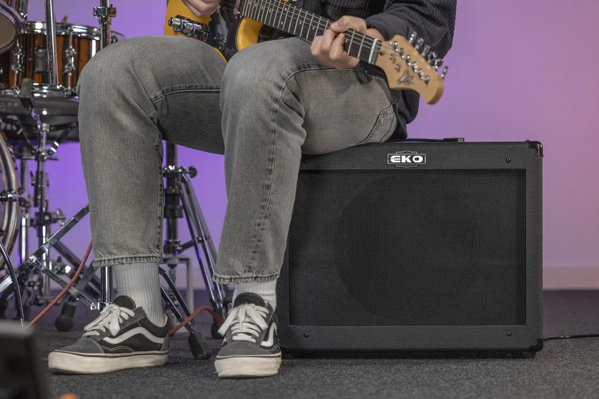Stealthy but powerful!The G-BS50 was developed by Eko, in partnership with technician Roberto Tittarelli, to offer guitarists a powerful and versatile transistor combo. This amp delivers 50W through a 12-inch speaker and allows you to tackle a variety of sounds and styles of music thanks to its two selectable channels (clean and drive), for clear or more saturated sounds. The reverb effect is perfect for adding depth to your sound, for a sound that won't go unnoticed.Complete for any use !The G-BS50 features a comprehensive interface: a volume control for the clean channel, complemented by a classic three-band EQ, and gain and volume controls for the overdrive channel. A switch allows you to select the desired channel, but this can also be done via the footswitch input (not included). In addition to the two guitar inputs (High for passive pickups, Low for active pickups), this amp includes a headphone output for discreet practice when needed. Finally, an effects loop also allows you to insert your guitar effects pedals to enhance your sound.The Eko G-BS50 is a complete guitar combo for experienced guitarists looking for a versatile amp for home, rehearsals/gigs, or studio, at an affordable price.