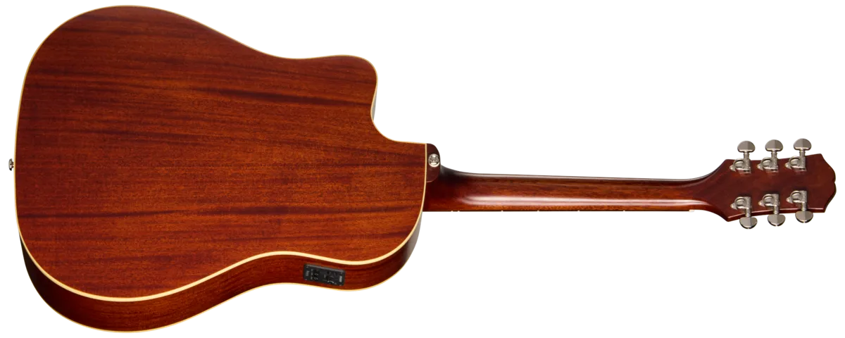 The Gibson J-45M has been the cornerstone of Gibson's round shoulder acoustic lineup since it was first introduced in 1942. It is the most popular acoustic guitar model ever made by the company. Renowned for its no-nonsense practicality and wide acceptance and use across genres, it quickly earned the nickname, "The Workhorse." Now, Epiphone is proud to introduce the J-45 Standard EC. This new model, which is part of the Inspired by Gibson Collection, features all of the tone and utility of the J-45 Standard, but also incorporates the advantages of a cutaway body for even more expressiveness and upper-fret accessibility.The J-45 Standard EC features a round shoulder cutaway body with a back and sides made from solid mahogany. The mahogany body is paired with a solid spruce top for the classic tonewood recipe that is at the heart of the J-45 design. Since it is made from solid tonewoods, the sound of this guitar will only improve as it ages. The one-piece mahogany neck is glued to the body and attaches with a tapered dovetail joint. The neck has a comfortable Rounded C profile and is topped with a rosewood fretboard with 20 standard frets and mother-of-pearl dot inlays. The headstock features the popular 60s Kalamazoo shape, and is equipped with precise and smooth-turning Grover® Rotomatic® tuners and a bone nut, and is adorned with the Epiphone logo inlaid in mother-of-pearl. The Epiphone J-45 Standard EC also comes with a Fishman® S-Core under-saddle piezo pickup and PreSys Il preamp preinstalled, so it's ready for live performances as well as studio recording. The preamp features side-mounted controls for volume, bass, treble, and a phase switch, while a combination battery box and endpin output jack make battery replacement easy. It even has an electronic tuner built in so you can quickly and easily check your tuning, even in the middle of a gig. A premium gig bag is also included to help keep the J-45 Standard EC safe when not in use, and allows for easy grab-and-go transport to your next jam session, rehearsal, or gig.A battery is not included. To power your pickup, you will need a 9-volt battery.