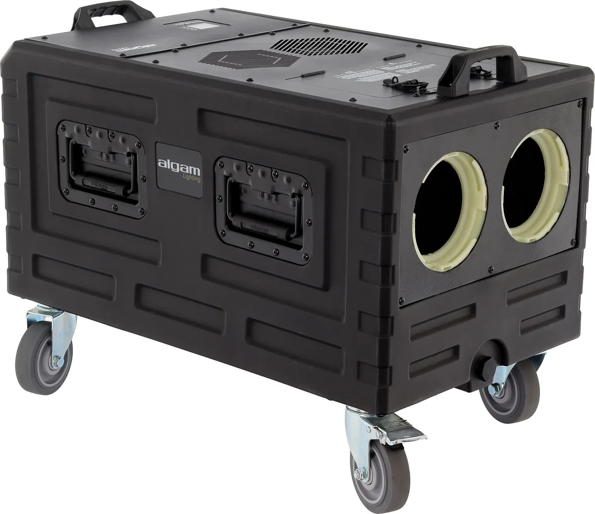 The Algam Lighting NEBEL3000 ABS combines high output with professional-grade design. With its 3000 W power, it delivers an impressive fog output of 566 m³ per minute, covering areas of up to 400 m². Its fast warm-up time of 4 to 7 minutes ensures efficient operation, even in demanding production environments. The dual output nozzles provide an even distribution of low-lying fog, maximizing visual impact on large stages and open spaces.