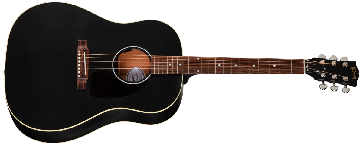 First introduced in 1942, the Gibson J-45 M has remained a mainstay Gibson acoustic model. It has earned its name as "The Workhorse" due to its wide acceptance, no-nonsense simplicity, and understated elegance. It's one of the most recorded acoustic guitars in history and Gibson's best-selling acoustic model of all time. Handcrafted with care in Bozeman, Montana, by Gibson's expert acoustic luthiers, the new Gibson J-45 Special offers players a USA-built Gibson acoustic guitar at a very attractive price. The J-45 Special has a round shoulder body constructed using genuine solid mahogany for the back and sides and a solid Sitka spruce top. The top is reinforced with our traditional scalloped X-bracing. This combination of tonewoods delivers a warm, balanced tone with excellent dynamic range that is great for any musical genre. The "concert depth" body is slightly thinner than on a J-45 Standard, giving the J-45 Special a leaner and tighter bass response that sits perfectly in the mix and also makes it easier to hold. The utile neck is attached to the body with a compound dovetail neck-to-body joint, and like all Gibson acoustic guitars, it is affixed with hot hide glue. The neck has a comfortable and fast-playing Slim Taper T™ profile, and the rosewood fretboard has a 12" radius and is adorned with simple mother-of-pearl dot inlays and is fitted with 20 standard frets. The traditional belly-up rosewood bridge is equipped with a TUSQ® saddle, and the nut and bridge pins are also TUSQ. High-quality Grover® Rotomatic® tuners ensure solid tuning stability. The J-45 Special is finished in satin nitrocellulose lacquer in your choice of Satin Ebony, Satin Natural or Satin Honey Burst. It comes with an L.R. Baggs Element Bronze under-saddle piezo pickup with active electronics and an easily accessible soundhole-mounted volume control pre-installed for studio-quality plug-and-play anywhere. The J-45 Special also comes with a premium soft shell case.