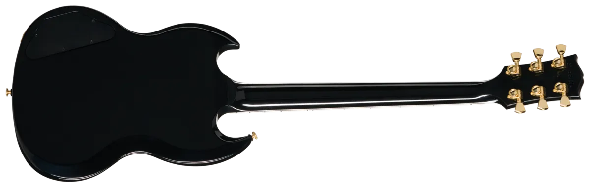 The return of the SG™ Supreme has resonated strongly with players, quickly establishing it as one of the most compelling introductions of the past year. Its updated appointments and refined design struck a chord, and continued player enthusiasm has led to the arrival of a new two-pickup configuration finished in a rich, opaque Ebony. The Gibson SG has remained one of the brand's most enduring and widely admired models, trusted by musicians around the world and across countless musical styles. With the SG Supreme, Gibson elevates this classic platform into a premium instrument that blends cutting-edge performance with eye-catching visual sophistication.At its core, the SG Supreme combines a plain maple top with a mahogany body, presented without a pickguard for a smooth, contemporary look. A mahogany neck with a fast Slim Taper T™ profile is paired with an ebony fretboard featuring a 10"-16" compound radius, delivering comfort for first-position chords and effortless bends higher up the neck. Twenty-four medium jumbo frets provide expanded range, while Super Split Block mother-of-pearl inlays add a refined aesthetic. The headstock showcases a newly developed mother-of-pearl "Chandelier Inlay," inspired by an original 1940s design uncovered in the Gibson archives. Locking Grover® tuners with Keystone buttons, working alongside a Graph Tech® nut, ensure exceptional tuning stability, while the aluminum Nashville Tune-O-Matic ™ bridge and aluminum Stop Bar tailpiece contribute to precise intonation and strong sustain.Sound is delivered by a Burstbucker™ Pro and Burstbucker Pro + pickup set, wired with push/pull volume controls for coil tapping and individual tone controls for further shaping. The timeless Ebony finish is complemented by gold hardware, resulting in an instrument that is as visually striking as it is sonically versatile. For players seeking a no-holds-barred guitar that excels in sound, feel, and appearance, the SG Supreme represents the leading edge of modern Gibson craftsmanship. A hardshell case is included for secure transport and protection.