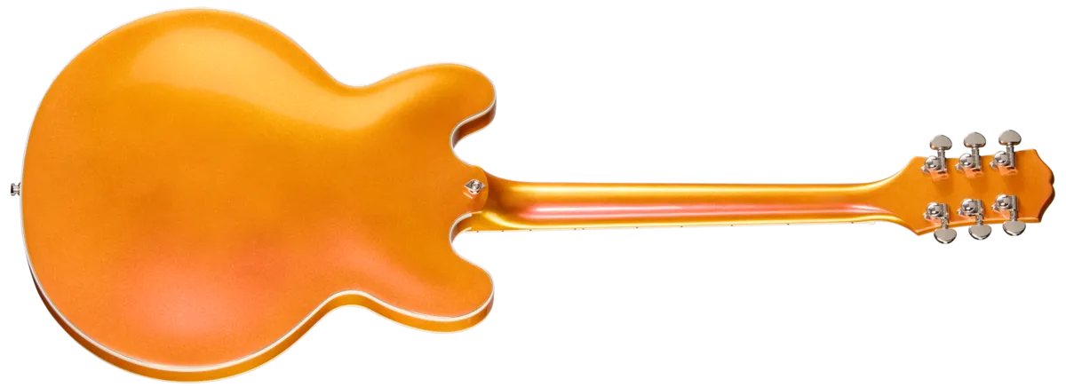 Body Binding Multi-ply top and back Body Material 5-ply layered maple/poplar Body finish Gloss Body shape ES-335 Body Style Semi-hollow bodyNeck Profile Modern C Frets Stainless steel Joint Glued in, set neck Fingerboard material Ebony Nut Material Graph Tech Inlays Split-block Fingerboard Radius Compound, 10 in. to 14 in.Binding Single-ply Scale Length 24.75 in. | 628.65 mmElectronics Neck pickup Epiphone Probucker Ignite Bridge pickup Epiphone Probucker Ignite Controls 2 volume, 2 tone with push/pull coil split and phase Pickup selector 3-way toggleHardware Bridge Locktone Tune-O-Matic Finish Nickel Plastics Black Tuning machines Grover Rotomatic, locking Control knobs Knurled Pickup cover Nickel Tailpiece LockTone Stop BarCase & SKUs Case Gig bag SKU EIF355MESNH, EIF355DFSNH, EIF355FSSNH