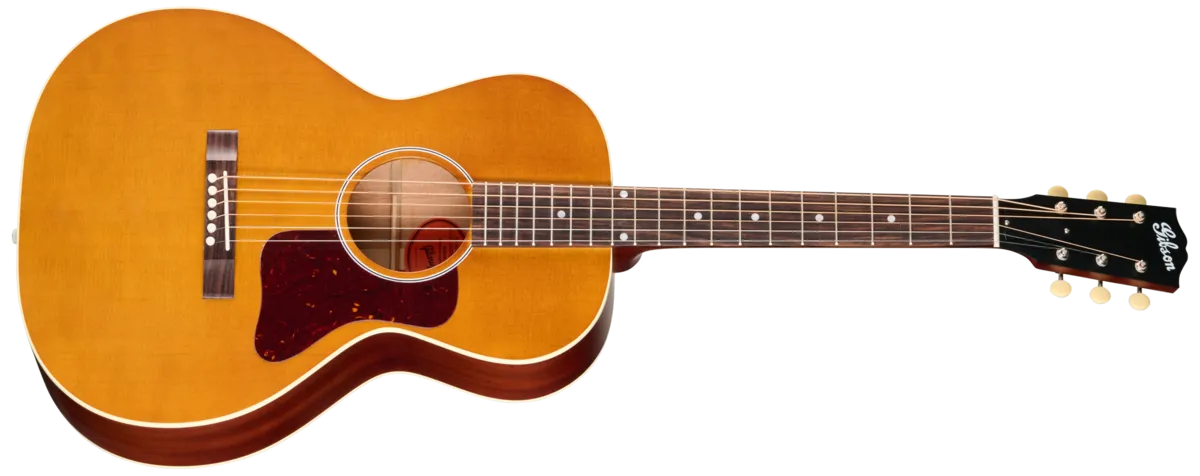 First introduced in the early 1930s, the Gibson L-00 quickly became one of the most recognized small-body acoustics in the Gibson lineup. Celebrated for its compact feel and its remarkably balanced sound-captured in Gibson's 1934 catalog as offering a tone of "perfect balance" —the L-Series has long been associated with parlor-style playing, thanks to its popularity in living rooms and home music spaces. Its appeal has endured for generations.Gibson now proudly unveils a fresh take on this revered design: the L-00 Century 12-Fret. While it preserves the core attributes that modern L-00 players appreciate, this edition moves to a 12-fret neck-to-body joint rather than the familiar 14-fret layout. This shift is more than cosmetic. With a 12-fret connection, the neck is slightly shorter, and the bridge plate shifts into a more central, more resonant zone of the top. This placement helps the soundboard work more efficiently, improves playing comfort, and yields a warm, articulate, and lively tonality that responds beautifully to fingerstyle techniques and players with a lighter, more nuanced attack.Though Gibson has built 12-fret L-00 models before, they have historically appeared only on the earliest pre-war flat-tops or in limited-production runs, making them far less common than 14-fret versions. Now, the distinctive voice of a 12-fret parlor guitar returns as a standard offering in the L-00 Century 12-Fret. Part of the new Century Collection marking 100 Years of Gibson Flat-Tops, it pairs a mahogany body with a Sitka spruce top and is framed with single-ply cream binding on both the top and back.Its mahogany neck features a comfortable SlimTaper™ 12-Fret profile and uses a compound dovetail joint secured with hot hide glue, a traditional build approach used throughout Gibson's acoustic range. The rosewood fingerboard carries 19 frets and understated mother-of-pearl dot inlays.The headstock showcases open-back Golden Age strap tuners with cream buttons and an early-1900s-style Gibson script logo decal for an authentic vintage look. Complementing this are period-inspired touches such as the sloped-rectangle closed-slot rosewood bridge. The guitar is completed with a bone nut and saddle, TUSQ® bridge pins, a classic L-00-style pickguard, and a hand-applied satin nitrocellulose lacquer finish. Each instrument ships in a premium Century Collection tweed hardshell case and is offered in both right- and left-handed configurations. Experience the distinctive character and inviting resonance of a Gibson parlor acoustic with the L-00 Century 12-Fret.