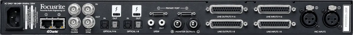 •Ultra-low round trip latency to track through plug-ins and record virtual instruments in real time16 line inputs on D-sub, coupled with 16 line outputs and two main monitor outputs