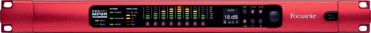 RedNet MP8R is a 1U, eight-channel remote-controlled mic pre and A-D interface for any Dante™ audio-over-IP network. Featuring network and power supply redundancy, RedNet MP8R is the ideal choice for providing mic pres in many critical-path applications, whether in Post Production, Broadcast, Live Sound or the Recording Studio.