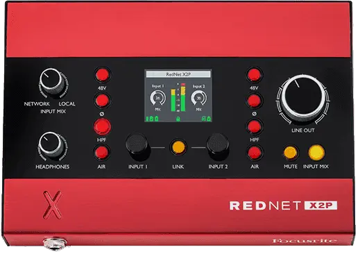 RedNet X2P is a compact, portable and robust 2x2 Dante™ audio interface featuring two Red Evolution mic pres, stereo line out and a stereo headphone amplifier. RedNet X2P allows you to effortless add a high quality Dante audio interface by integrating power, audio, clock and remote control over a single Ethernet cable – simply use a power over Ethernet switch or PoE injector. A local input mixer allows 'more me' monitoring control, while a control lockout mode ensures settings can not be changed when used remotely.