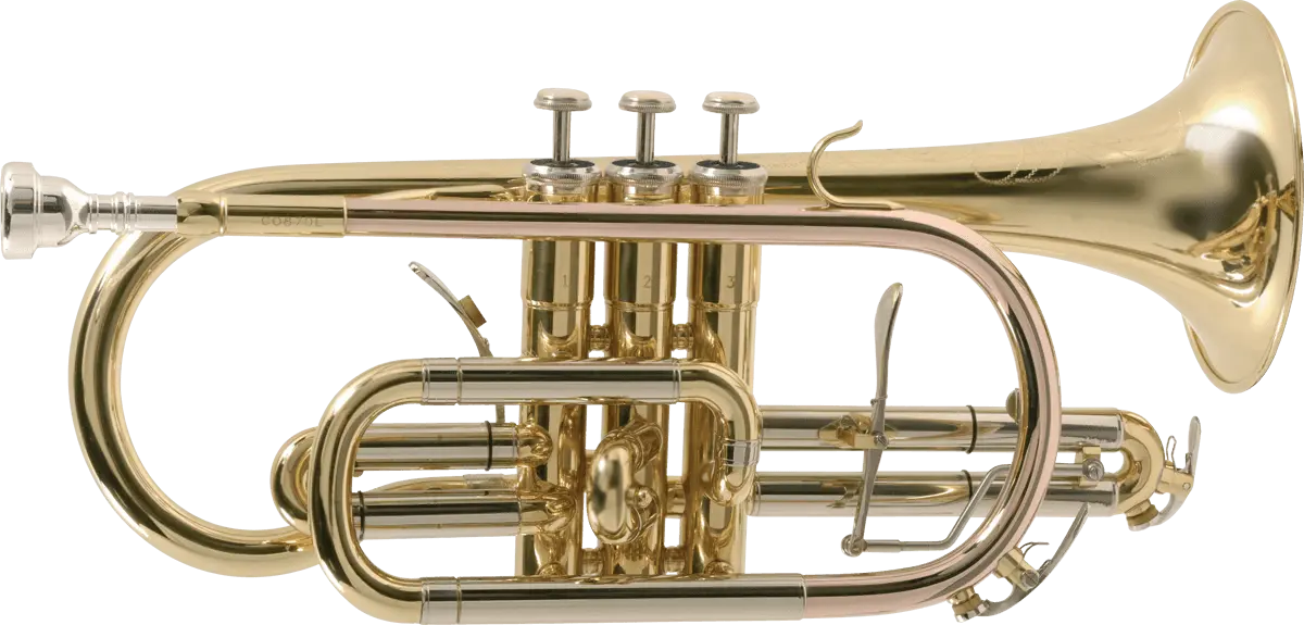 Rose brass leadpipe, medium large bore. Thin bell 125mm diameter, enriched with copper for a soft sound. Beautiful engraving. Metal piston buttons, heavy bottom caps. Triggers on 1st and 2nd valve slides. Deluxe soft case backpack.