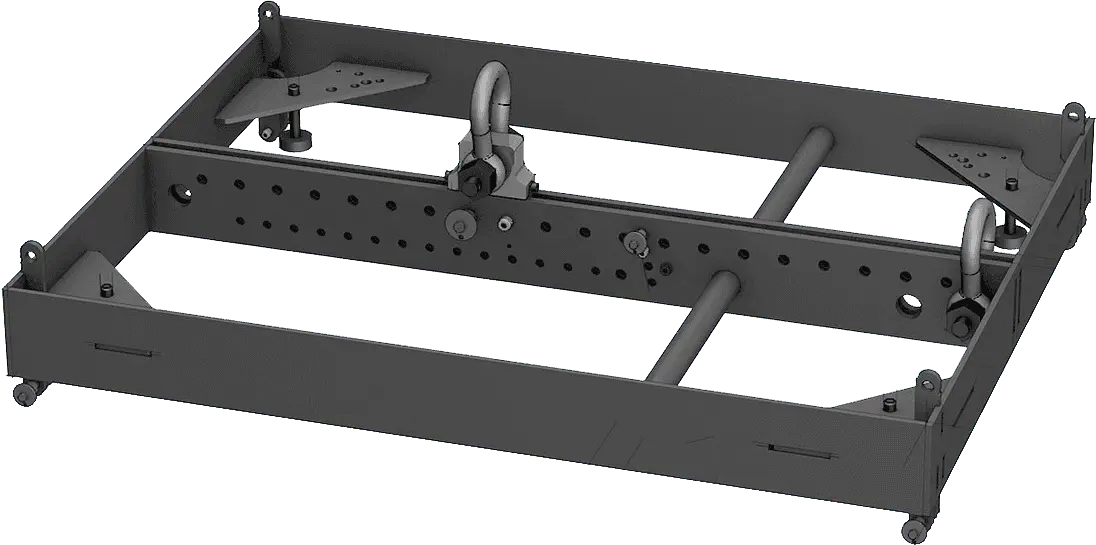 The COSMO CRF-80 serves as the flying frame for all mid / high units as well as for the flyable sub of the COSMO series. The CRF-80 frame can weigh up to 700 kg (MWL) and is used with large COSMO Set-Ups (incl. flyable subs). With the C-M20 Sub-Adapter, the frame in ground stacking mode serves as a connection between the C SUB series and COSMO Mid / High Units. Scope of delivery: CRF-80 rigging frame, C-PPA pick point adapter, C-M20 sub adapter, 4 leveling feet, 3 shackles.