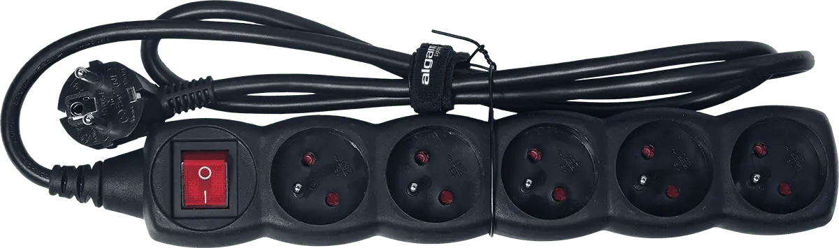 - 5 type-E plugs with main switch, 16A / 230V, IP20