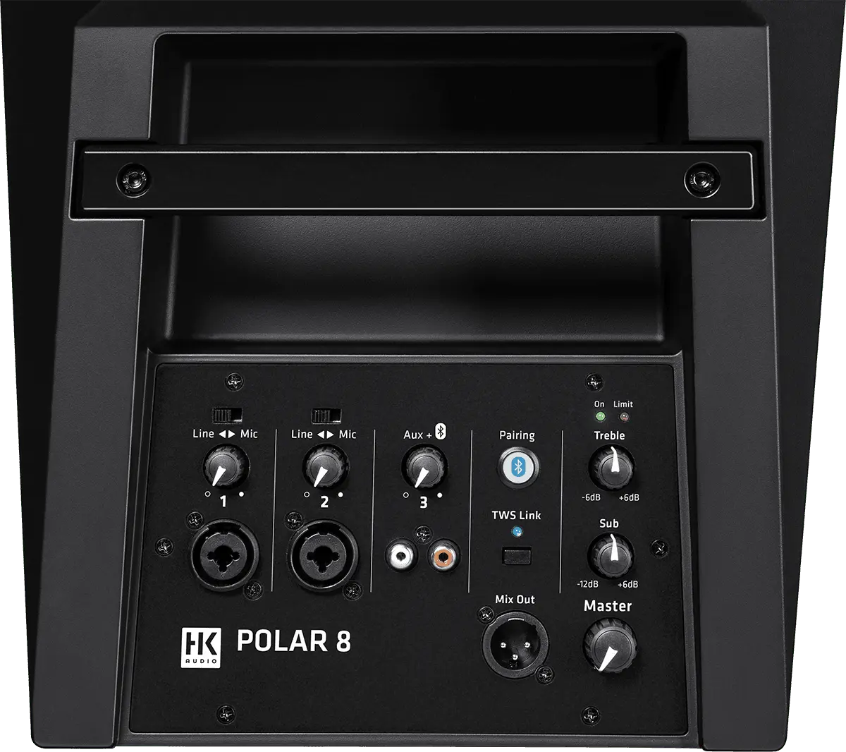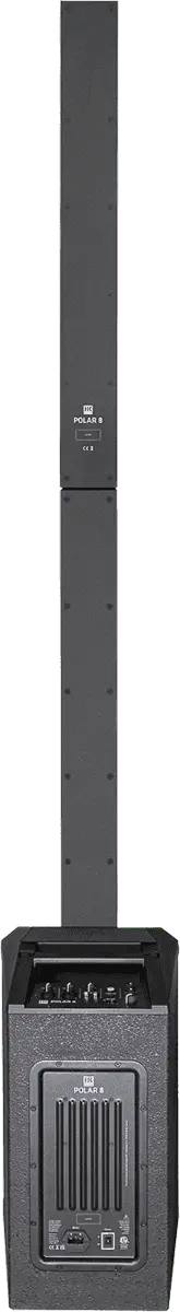 The column element of the compact POLAR 8 features powerful 2.5″ neodymium speakers with a 1″ voice coil in a curved column arrangement. Together with the high-performance bass speaker in a metal-reinforced, low-resonance plastic enclosure and the 1,200 watt (peak power) Class-D power amplifier, the system offers powerful, uniform sound and superior power reserves.