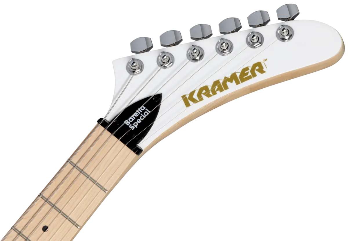 The Baretta Special from the Kramer Original Collection is a great way for new players to discover one of the most influential guitars in rock history at a price anyone can afford! Featuring a powerful Alnico 5 “zebra-coil” humbucker with a single volume control, a tone-rich mahogany body, maple neck, and a Kramer Traditional tremolo.