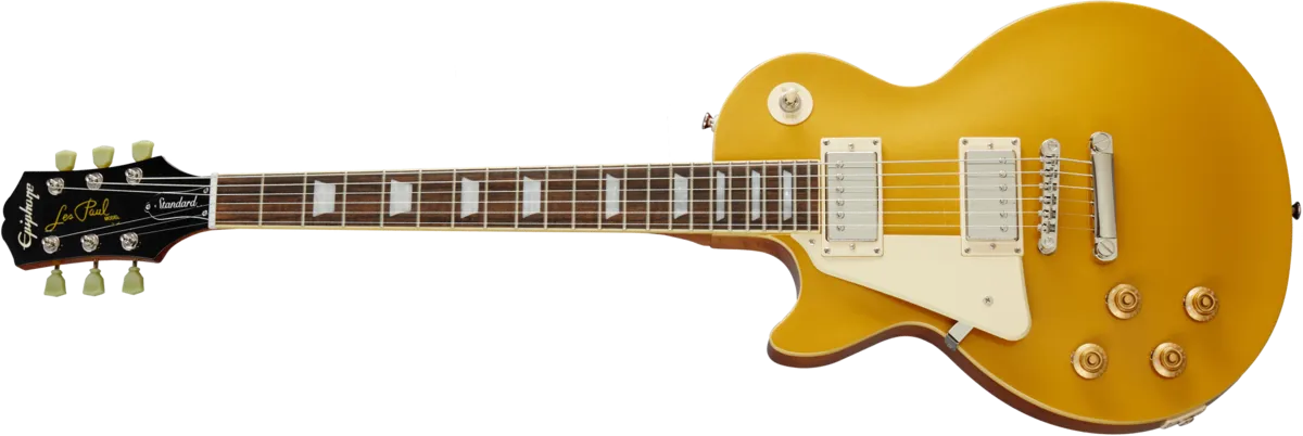 Les Paul Standard 50s modelene er en del av Epiphone’s nye “Inspired by Gibson” Serie og gjenskaper lyden av Les Paulene fra 50-tallet. Leveres med klassisk mahogni kropp og topp i lønn, mahogni hals med lang sammenkopling mellom kropp og hals. Utstyrt med ProBucker™ humbuckers med 50-talls wiring og CTS elektronikk. Tilgjengelig i Metallic Gold, Vintage Sunburst og Heritage Cherry Sunburst. Epiphone’s lange vennskap med mr. Les Paul startet i 1940 da Les bygde en av verdens første Solid Body elektriske gitarer under kallenavnet «the Log», dette ble videreført til å inspirere til Les Paul Standard, som regnes a være den beste gitaren noensinne laget.