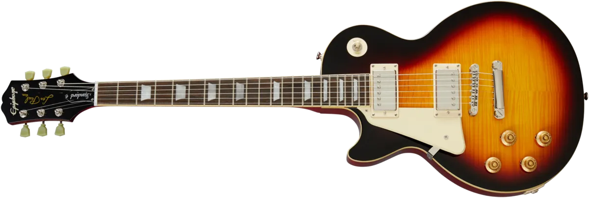 The Les Paul Standard 50s models are part of Epiphone’s new Inspired by Gibson Collection and recreate the sound of 1950s era Les Pauls. Featuring a classic Mahogany Body with a Maple cap and Mahogany neck with long neck tenon. Powered by ProBucker™ humbuckers with 50s style wiring and CTS electronics. Available in Metallic Gold, Vintage Sunburst, and Heritage Cherry Sunburst. Epiphone’s long friendship with Mr. Les Paul began in 1940 when Les built one of the world’s first solid body electric guitars while working nights at the original Epiphone factory in Manhattan. Les’ first solidbody guitar, nicknamed “the Log”, would go on to inspire the Les Paul Standard, what many consider the greatest electric guitar ever made.
