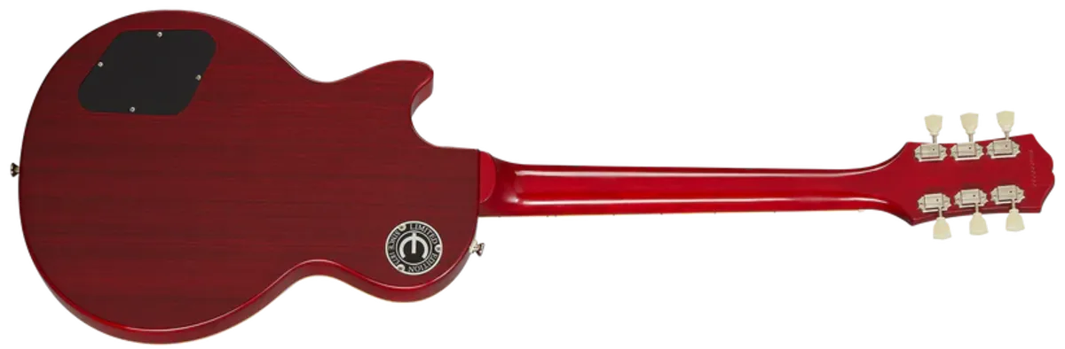 The Epiphone 1959 Les Paul Standard has a set mahogany neck with a deep set long-neck tenon that extends well into the neck pickup cavity creating even more tone and sustain. The authentic '50s rounded neck profile feels beefy yet comfortable in your hands while adding warmth and sustain with its greater mass.