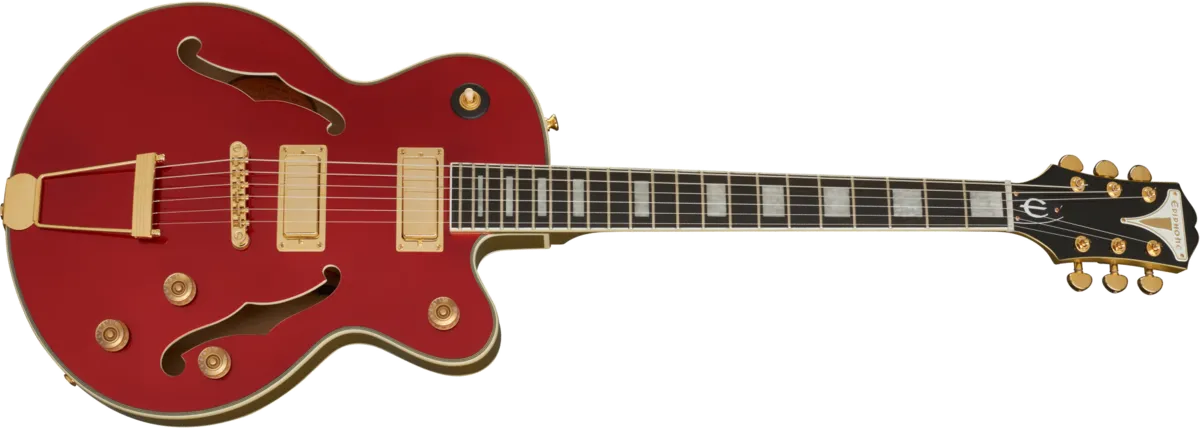 The new UpTown Kat™ ES Collection is the next generation of Epiphone’s classic “Kat” archtop and features a true ES style semi-hollowbody archtop with newly designed Epiphone ProBucker™ FB720 mini humbuckers™, Graph Tech® nut, Ebony fingerboard, and Grover® Rotomatic tuners. Available in Sapphire Blue Metallic, Ruby Red Metallic, Emerald Green Metallic, and Topaz Gold Metallic.