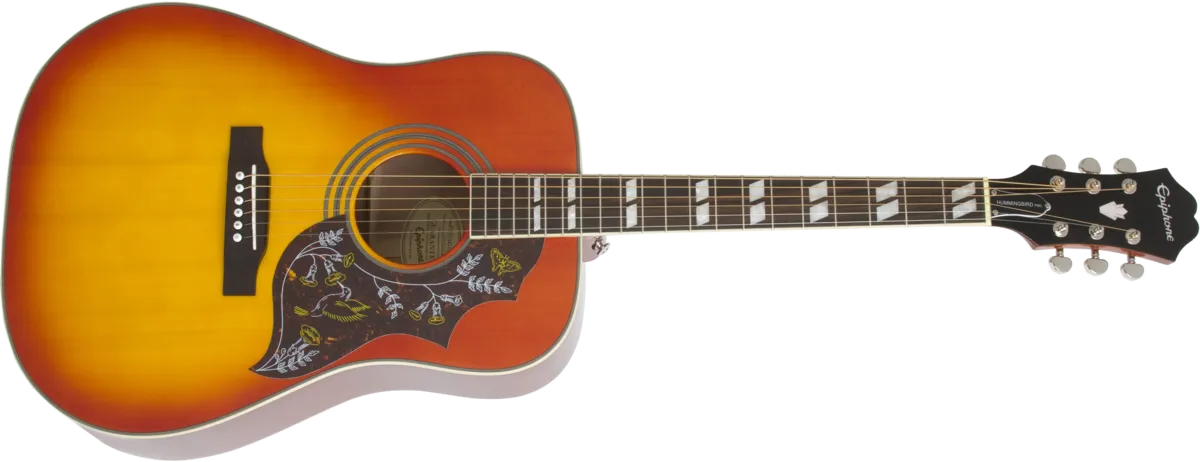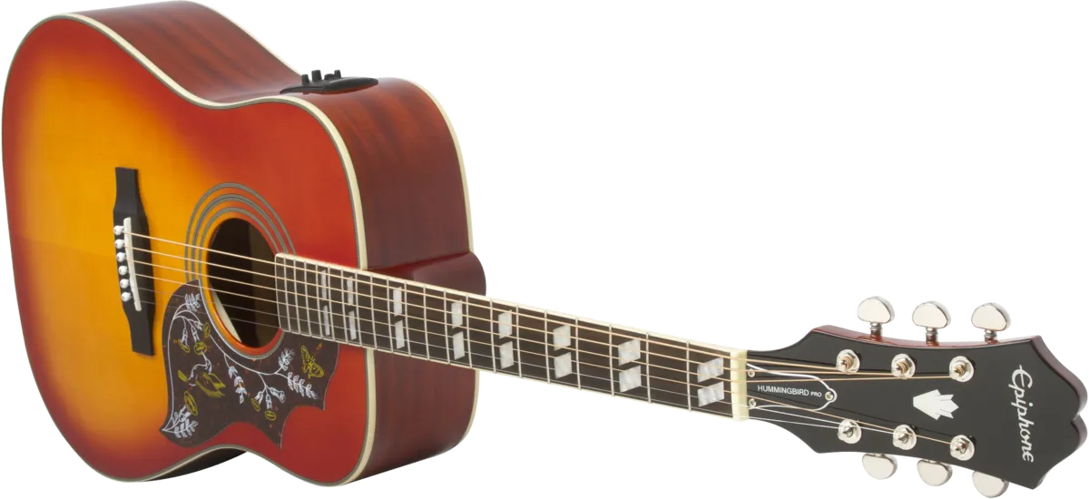 The Hummingbird PRO Acoustic/Electric updates the 60s classic with a Solid Spruce top, Mahogany neck and body, Grover® Rotomatic 18:1 ratio tuners, traditional binding and historic Hummingbird pickguard, and Fishman™ Sonitone™ pickup system.