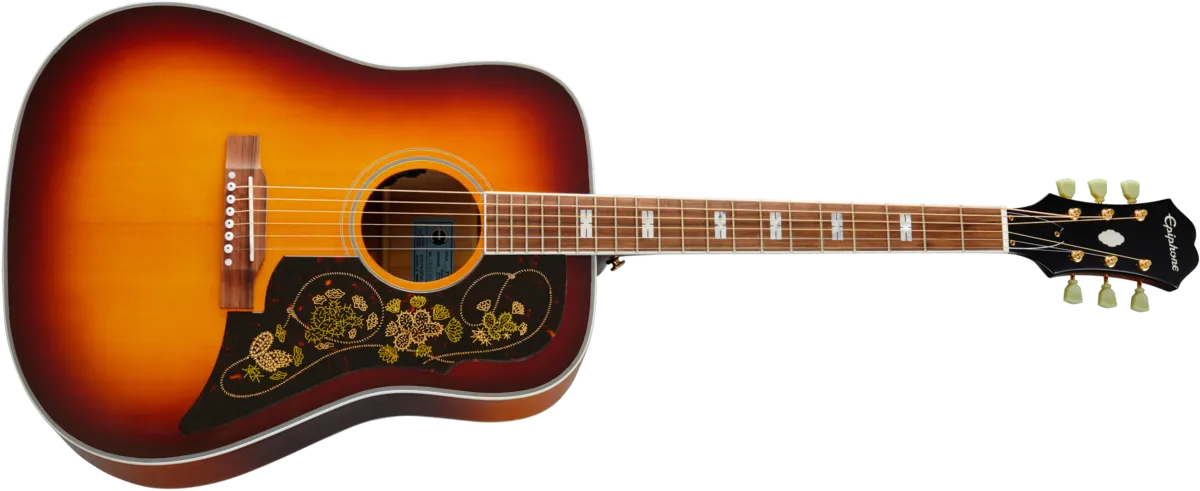 The Masterbilt Series presents a recreation of the rare Epiphone Frontier. Featuring a Solid Sitka Spruce top with the iconic “Rope and Cactus” pickguard, bone nut, and the state-of-the-art Fishman™ Sonitone™ Onboard Preamp System for true acoustic tone when plugged in. Available in Ice Tea Aged Gloss finish. Featuring Gibson Strings.