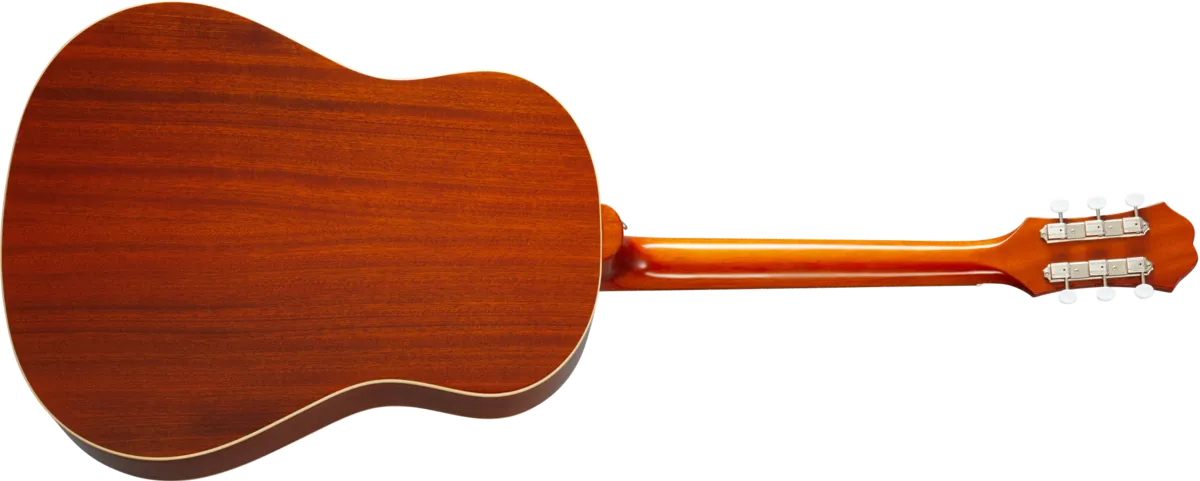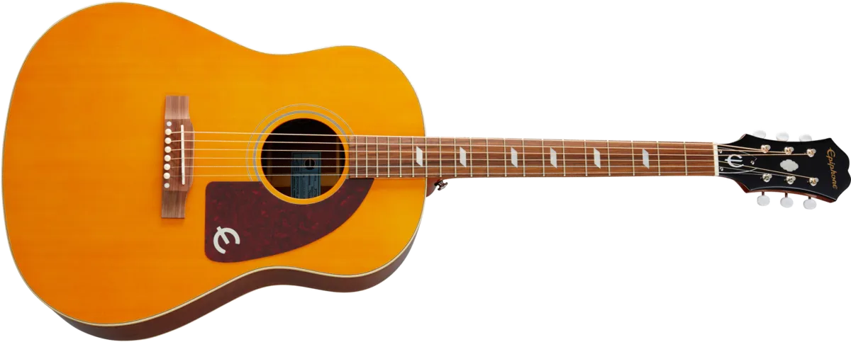 The guitar that inspired two British Invasions joins the Masterbilt family! Based on the historic 60s Texan played by Paul McCartney and Peter Frampton. Featuring a Solid Sitka Spruce top, Solid Mahogany body, bone nut and saddle, and the Fishman Sonitone OEM pickup system. Includes vintage style blue rectangle sound hole label. Available in Antique Natural Aged and Faded Cherry Aged finish. Featuring Gibson Strings.