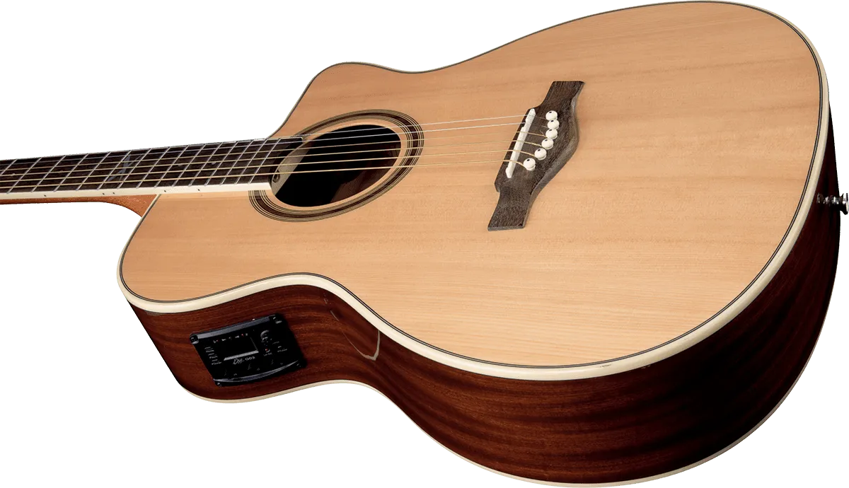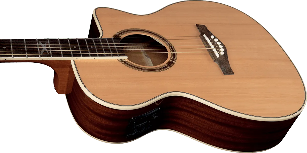 The Eko NXT A100ce features Spruce top, Mahogany back and sides, Mahogany neck and South American Roupanà fingerboard. This instrument represents the perfect choice if you want to learn to play guitar and you are looking for a more comfortable shape than the classic Dreadnought; an entry level Auditorium shape guitar with all the features to satisfy your eyes and ears.