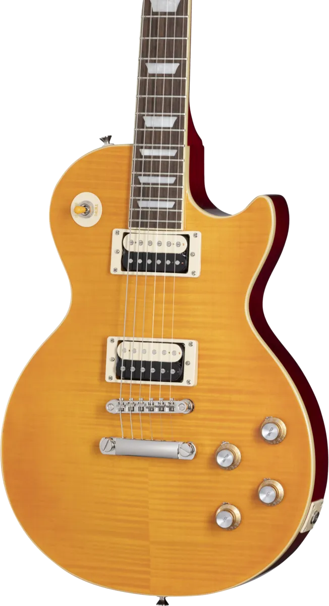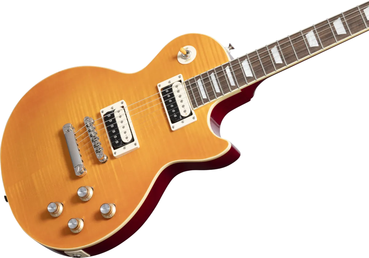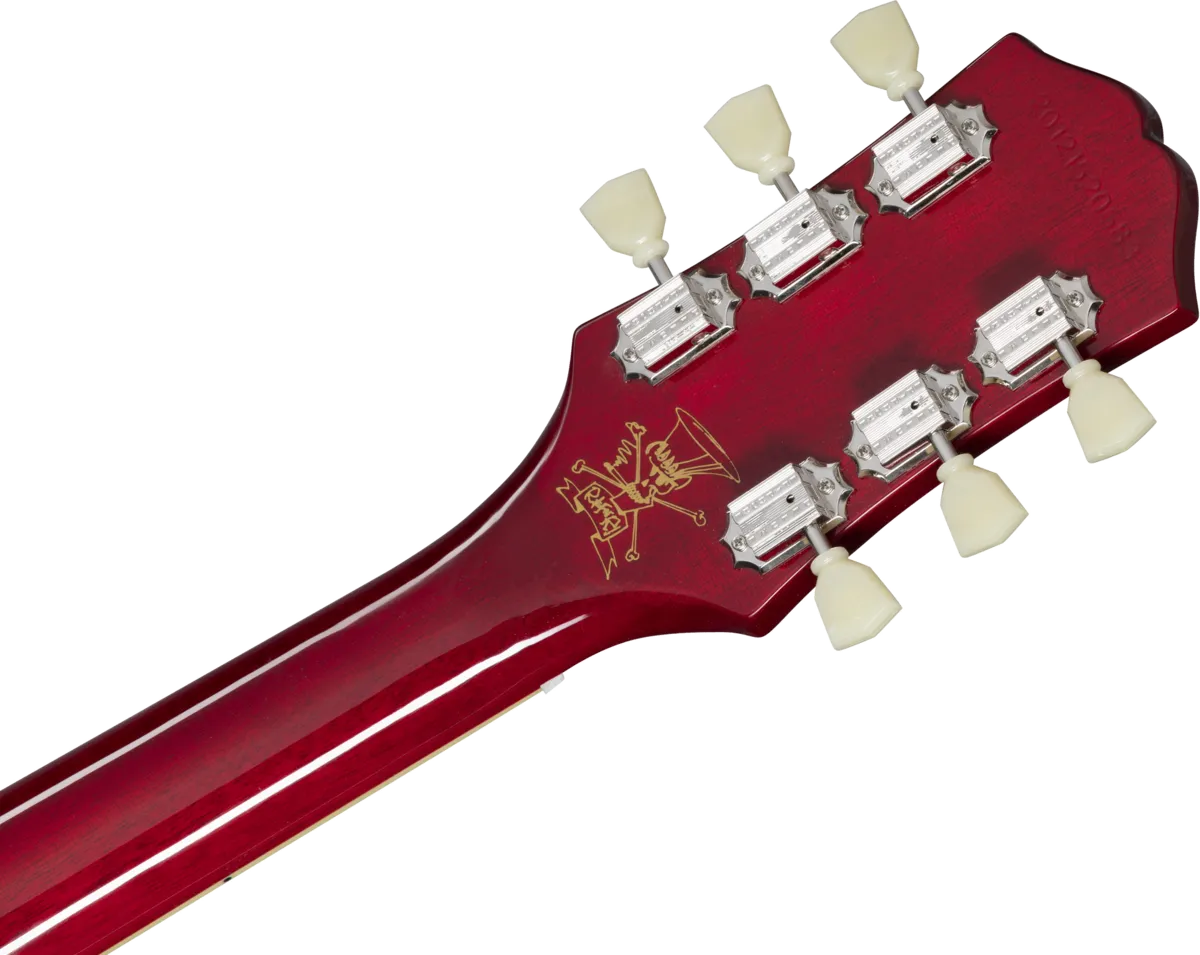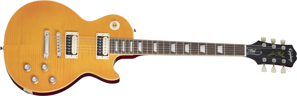 Epiphone and Slash are proud to present the Slash Collection. Part of the Inspired by Gibson Collection, it celebrates influential guitars Slash has used during his career, inspiring multiple generations of players around the world. Perfect for every stage and players of all levels, the Epiphone Slash Les Paul Standard features a mahogany body, maple cap with AAA flame maple veneer, a Graph Tech nut, Epiphone LockTone Tune-O-Matic bridge and Stop Bar tailpiece, and Slash’s personal touches including a C-shape neck profile, Epiphone Custom ProBucker pickups, color-coordinated hardware appointments, CTS potentiometers with Orange Drop capacitors, Epiphone Strap Locks, and a custom hardshell case. Exclusive to the Slash Collection are Slash’s “Skully” signature drawing on the back of the headstock and Slash’s signature on the truss rod cover.