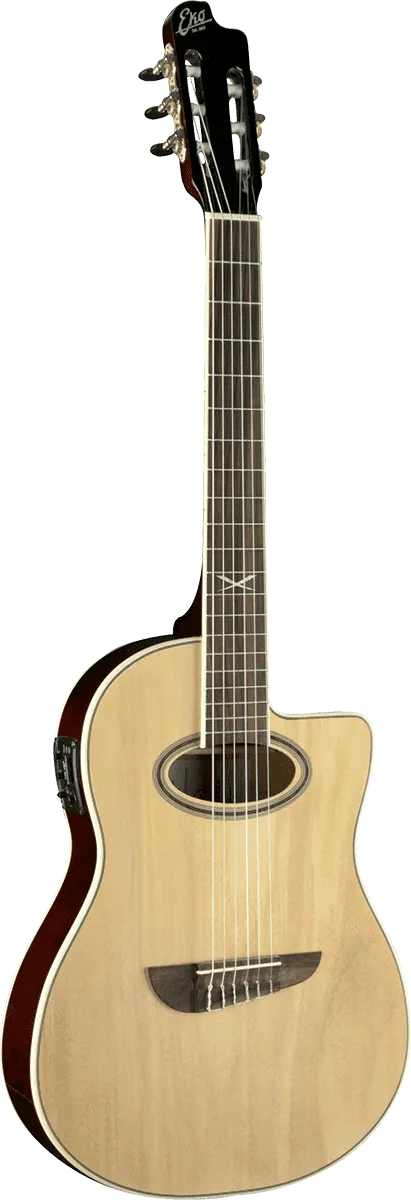 The gloss finish, the design of the headstock and bridge, the smooth and rounded shapes, the X logo at the twelfth fret for an attractive and elegant look with the Italian taste: very high value details for an entry level Nylon Acoustic Guitar. Suitable as a first guitar to take lessons and to exercise, with a very comfortable feeling a little bit smaller and thinner than usual, but also as a next Nylon Guitar for more advanced players also to perform Live. Thanks to the Eko G03 preamp easily to plugin into an acoustic amplifier or direct into the P.A. for live performance. This onboard, in-house designed, EKO Preamp System features volume, bass, middle, treble, phase control as well as an onboard easy to read LED tuner with Mute/Tune function.