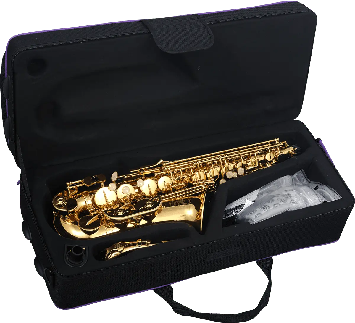 Eb, gold lacquered, engraved bell. 3 points Special SML connecting ring from bell to body. Adjustable screws on low keys.