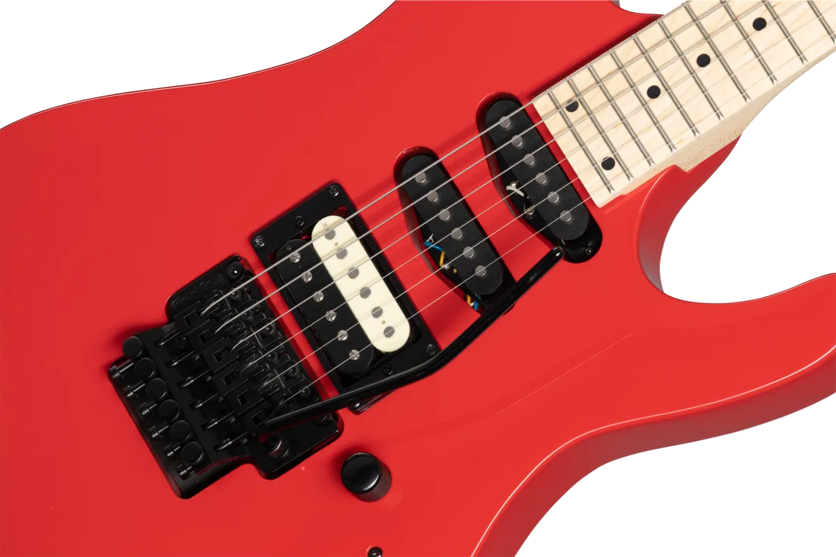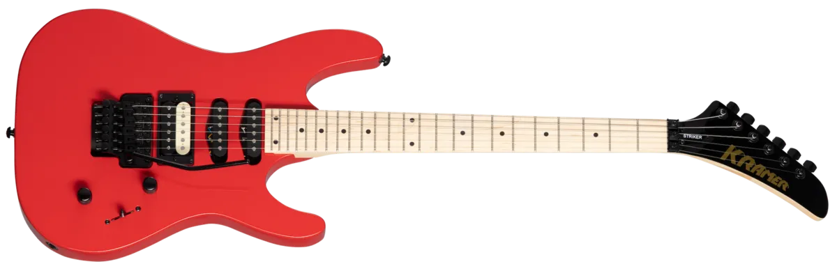The Kramer Striker™ is part of the Kramer Modern Collection and is a perfect entry to the world of Kramer's high-performance, shred-ready guitars! It features a satin-finished maple neck with a Kramer K-Speed SlimTaper™ C profile; it's fast, easy-playing, and incredibly comfortable. The exceptionally sonically versatile Striker comes equipped with three Alnico 5 pickups, including a zebra-coil bridge humbucker™ and two single coils, so it can provide sparkling clean single coil tones as easily as it delivers hard-rocking humbucker tones. It also has a licensed Floyd Rose® locking vibrato so you can use the whammy bar to your heart's content while remaining in tune.