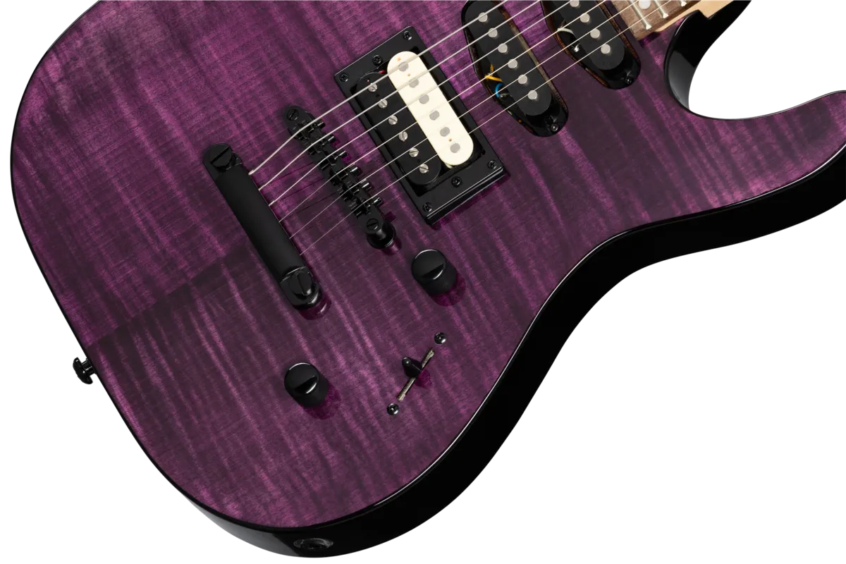Part of the Modern Collection, the Kramer Striker™ Figured HSS is a gorgeous entry into the high-performance, shred-ready world of Kramer guitars! Along with its stunning AAA flame maple top veneer, it features a satin-finished maple neck with a Kramer K-Speed SlimTaper™ C profile that's fast, easy to play, and incredibly comfortable. Exceptional sonic versatility comes courtesy of a zebra-coil bridge humbucker™ and two single coils, delivering sparkling cleans as easily as harder-rocking tones that can cover a variety of styles. An Epiphone™ LockTone Tune-O-Matic™ bridge and Stop Bar tailpiece ensure excellent intonation and loads of sustain. An optional hardshell case is available.