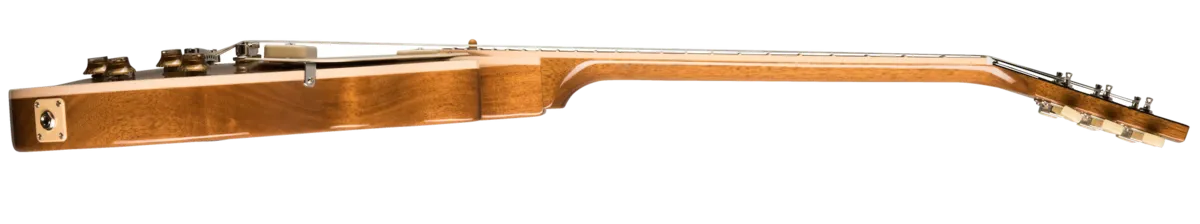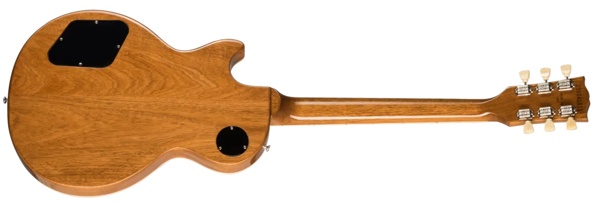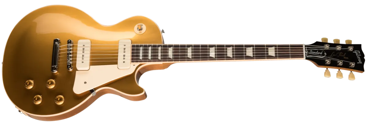 The new Les Paul Standard returns to the classic design that made it famous. It pays tribute to Gibson's Golden Era of innovation and brings authenticity back to life. The Les Paul Standard 50s P-90 has a solid mahogany body with a maple top and a rounded 50s-style mahogany neck with a rosewood fingerboard and trapezoid inlays. It's equipped with an ABR-1, the classic-style Tune-O-Matic™ bridge, an aluminum Stop Bar tailpiece, Vintage Deluxe tuners with Keystone buttons, and aged gold Top Hat knobs. The classic P-90 pickups (neck and bridge) are loaded with Alnico 5 magnets, audio taper potentiometers, and Orange Drop® capacitors.
