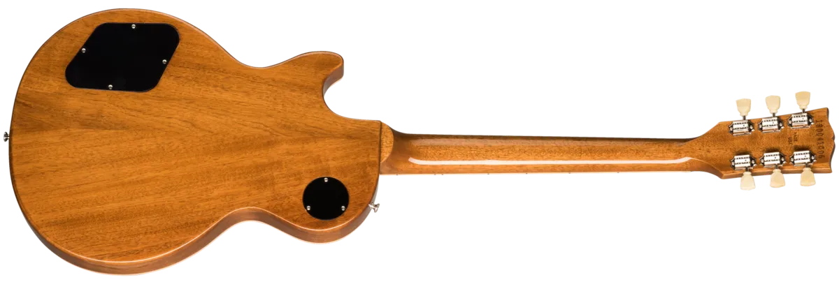The new Les Paul Standard returns to the classic design that made it relevant, played and loved -- shaping sound across generations and genres of music. It pays tribute to Gibson's Golden Era of innovation and brings authenticity back to life. The Les Paul Standard 50's has a solid mahogany body with a maple top, a rounded 50's-style mahogany neck with a rosewood fingerboard and trapezoid inlays. It's equipped with an ABR-1, the classic-style Tune-O-Matic bridge, aluminum stop bar tailpiece, vintage deluxe tuners with keystone buttons, and aged gold tophat knobs. The calibrated Burstbucker 1 (neck) and Burstbucker 2 (bridge) pickups are loaded with AlNiCo II magnets, audio taper potentiometers and orange drop capacitors.