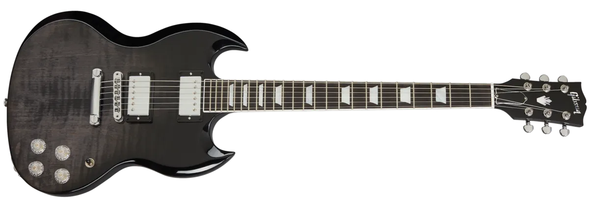 The newly refreshed Gibson SG Modern incorporates many contemporary updates that players have embraced, and it’s much more than a classic “solid guitar;” it’s a hybrid between an SG™ and a Les Paul™. Shaped and scarfed like a classic SG, the body is crafted with a AA maple top and mahogany back, characteristic of a Les Paul. This combination is renowned for its resonance and sustain. The genuine ebony, 24-fret compound radius fingerboard and asymmetrical, SlimTaper™ neck allow fast and silky access to the highest frets. A pair of calibrated Burstbucker™ Pro Alnico 5 humbuckers deliver firepower, and the push-pull controls allow you to switch between the Gibson humbucker and the single coil P-90 sounds, both of which have defined so many genres of music across multiple generations since we invented them. Upscale appointments include genuine mother-of-pearl inlays, Grover® Rotomatic® tuners, and clear Top Hat knobs.
