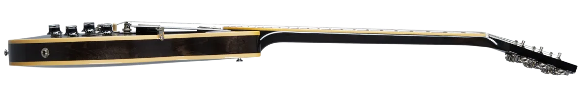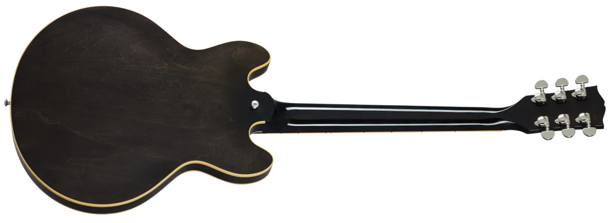 The Gibson ES-339 is a modern classic designed for those seeking the tone and look of an ES-335, but desire a slightly smaller, lighter instrument. The pearloid dot inlay rosewood fingerboard on a hand-rolled Rounded "C" mahogany neck remind players where it all started. The 57 / 57 Classic + humbuckers paired with our hand-wired tone circuit showcases the versatile Gibson ES tone that players have craved for over 60 years. Tuning stability and precise intonation are provided by the Grover Rotomatic tuners with Kidney buttons paired with light-weight Aluminum ABR-1 bridge and Stop bar tailpiece. Impressive gloss finishes include Cherry, and Trans Ebony.