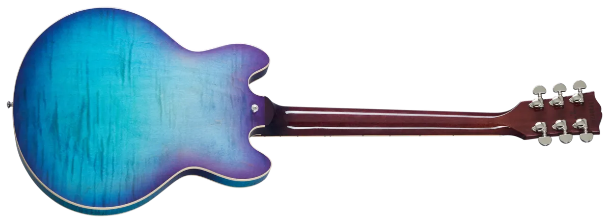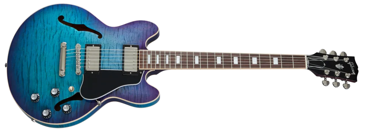The Gibson ES-339 is a modern classic designed for those seeking the tone and look of an ES-335, but desire a slightly smaller, lighter instrument. Crafted with a maple centerblock, and quarter-sawn spruce bracing, players will be impressed by the lightweight feel and expanded range of tonal capabilities. Equipped with high-end appointments like our hand-wired control assembly with 500K potentiometers and orange drop capacitors, the always stylish 57 / 57 Classic + humbuckers, and an ABR-1 bridge, this just might be the best one yet. Gorgeous AAA figured maple veneers are available in classic Sixties Cherry and striking Blueberry Burst.