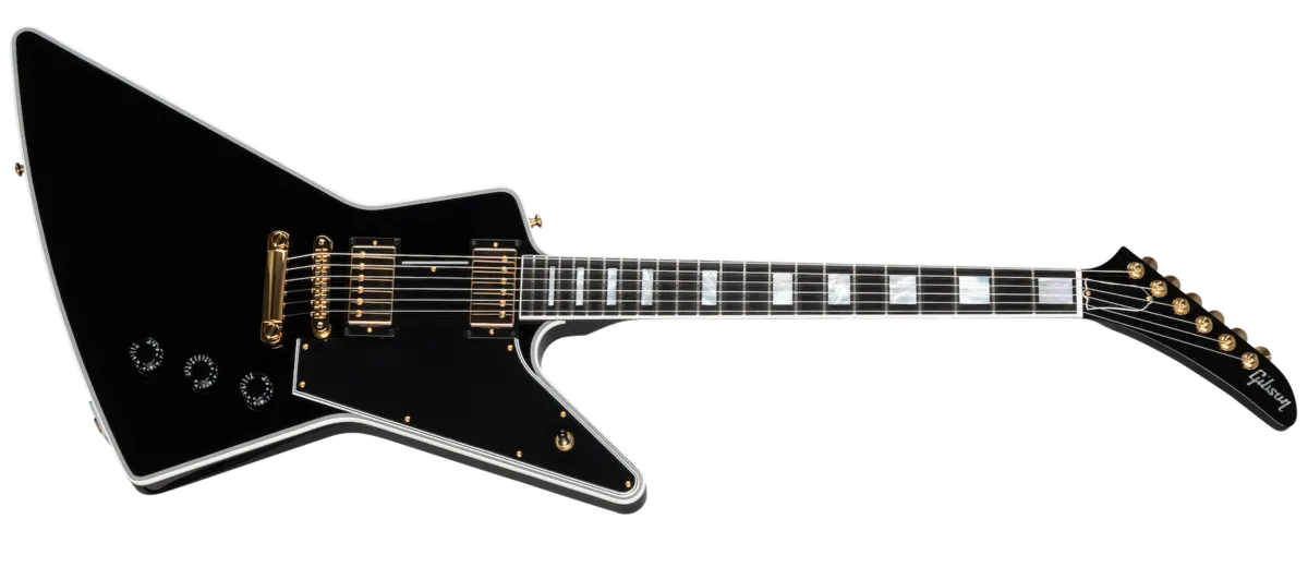 The classic Gibson Explorer dives into new aesthetic and sonic territory with this Custom-appointed version, replete with multi-ply binding, pearl appointments, gold hardware, and a solid Ebony fingerboard. It's an electrifying, upscale look which brings with it Gibson's signature playability, instantly-recognizable voice and Gibson Custom's unwavering commitment to building the best guitars on the planet.