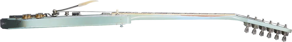When Gibson hired famed automotive designer Ray Dietrich to create a radical new solid body guitar, Rock 'n Roll history ensued. With its offset shape, neck-through construction and scorching mini-humbuckers, the '63 Firebird™ V became an instant classic. The Gibson Custom Shop is proud to present this exacting replica of a vintage original, which uses authentic contours, dimensions, and construction methods for an incredible ownership and playing experience. It features a Maestro™ Vibrola. It also features Heavy Aging by the skilled artisans of the Murphy Lab. The Murphy Lab Heavy Aged finish treatment, paired with heavily aged hardware, simulates decades of heavy play wear, giving it the unique character, vibe, and feel of an original example from the Gibson Golden Era.
