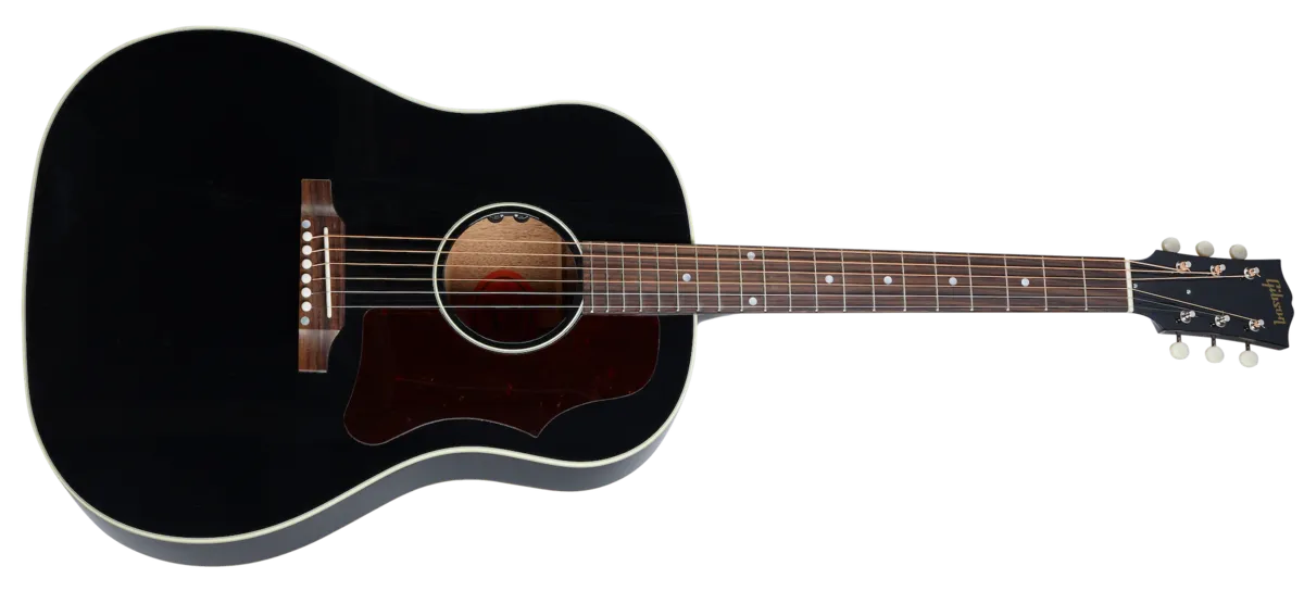 The new 50s J-45 Original model flaunts vintage-inspired detailing from the golden era of Gibson. Classic “Workhorse” materials include a Sitka Spruce top and Select Mahogany back and sides. The multi-ply top and single-ply back binding are subtly antiqued making each instrument look just like a seasoned Gibson acoustic. Appointed with cream button tuners, a 50s-era tortoise pick guard, and upgraded with an LR Baggs® VTC pickup for the best and most natural-sounding tone when amplified.