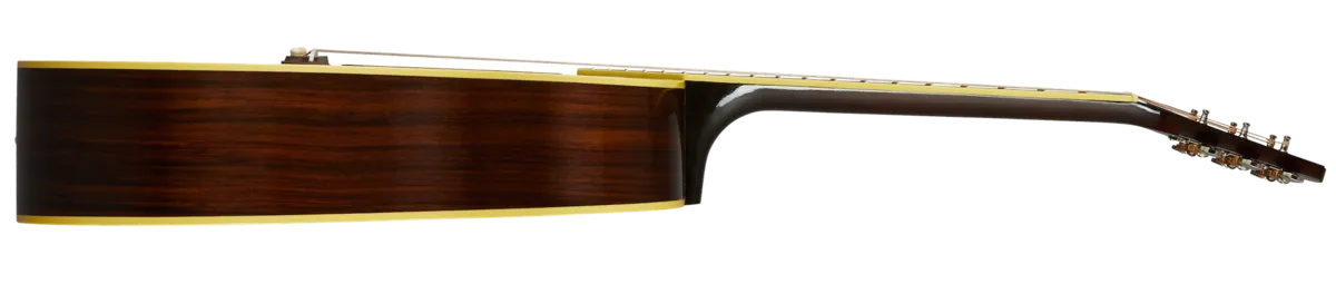 During a time when cultural optimism was low, Gibson dreamed up a new line of "advanced" instruments; included in those models was the Advanced Jumbo. Due to low production numbers from 1936-1939, this model largely flew under the radar even though it was a supreme sounding and performing instrument. The Gibson Acoustic Custom Shop is pleased to once again offer the Gibson 1936 Advanced Jumbo, outfitted with a thermally aged Adirondack red spruce top, rosewood back and sides, and premium Waverly tuners. The 1936 Advanced Jumbo brings back all the tone and prestige that made these such a sought-after instrument by artist and collectors.
